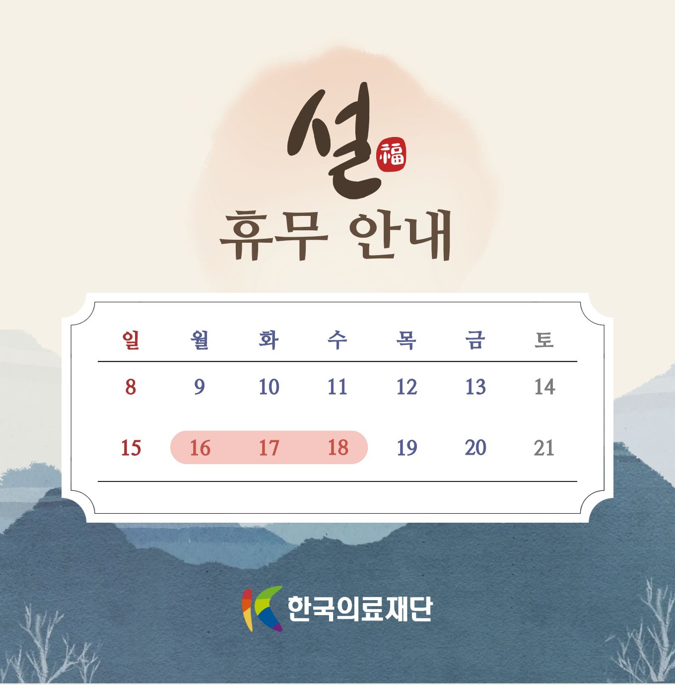- 일요일 및 공휴일 휴무
